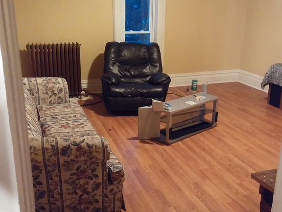This is a 2nd floor apartment with two big bedrooms and a large living room and kitchen. Monthly rent is $625, but if paid before the 10th of each month the rent is $575. There is also a washer and dryer hookup in the kitchen, appliances not included. The unit comes with an electric glass top stove and refrigerator. Owner pays for trash, water, and sewer. Tenant is responsible for gas and electric.