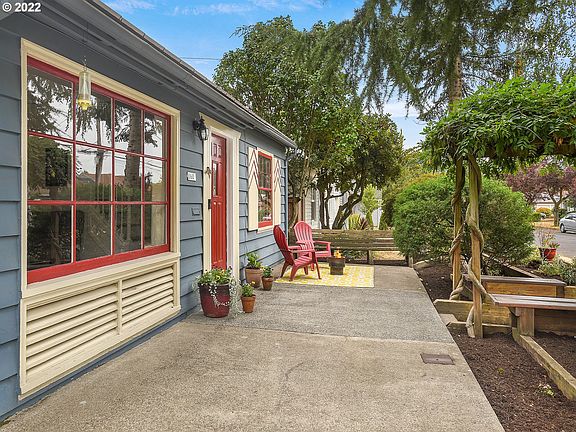 Idyllic location and Story-book home...what a combination. With 4 beds & 2 new baths above ground, this floor plan is exceptional. Enjoy spacious living rm, hardwoods throughout, fireplace, formal dining & brand new remodeled kitchen w/ butcher block counters & farm sink. 50 year-rated metal roof, newer vinyl windows, gas furnace & newer electric panel. Lovely oversized lot w/ large newer deck, stone patio, raised beds & room to roam. This one is special! Walk Score 73 & Bike Score 90! [Home Energy Score = 4. HES Report at https://rpt.greenbuildingregistry.com/hes/OR10205254]
