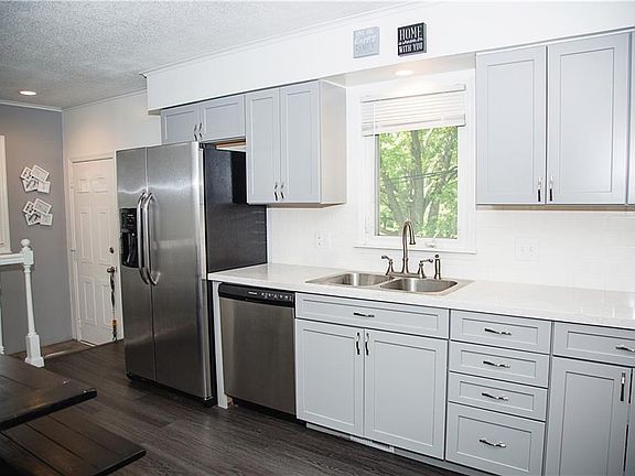 Everything about this home is unique! The assessors page calls it a split foyer. It's not like any split foyer you have ever seen! You will enter the front door and walk up a few steps. Here you will find a beautiful living room with lots of natural light, white painted trim, and a wood burning fireplace! You also have a totally remodeled kitchen with gray cabinets, white counter tops, tile back splash, and newer appliances. You also have a master suite with its own % bath, 2 additional bedrooms and a full bath. All of this on one level! You access the basement by going down the stairs in the kitchen. Here you will find another family living area, a 4th bedroom, and another % bath. There is also an attached oversize 2 car garage. Add the deck for entertaining friends or a quiet evening watching the kids play in the fenced back yard and you will be ready to call this one home!
