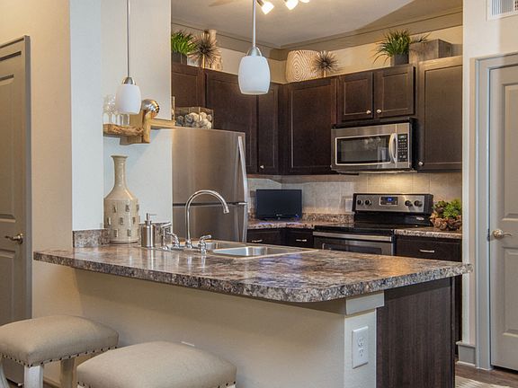 Located in the desirable South Tulsa area, these Tulsa luxury apartments place you minutes from Woodland Hills Mall, River Spirit Casino Resort, and LaFortune Park. The community features a resort-inspired saltwater pool, state-of-the-art fitness center, dedicated dog park, and beautifully landscaped grounds that create an oasis of tranquility.
