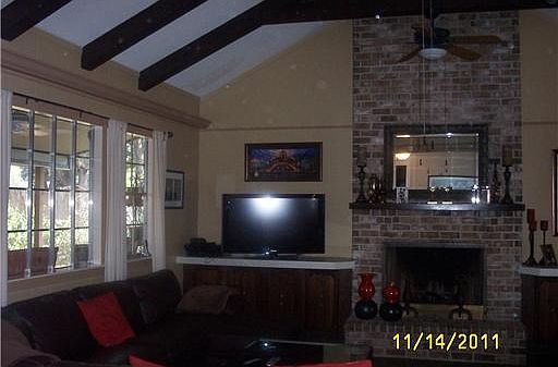 Spacious home on beautiful lot! Dead end street! Home could easily be converted to a 3 bedroom 2.5 bath by completing unfinished bedroom & bath, which are not presently in living area. Den with vaulted ceilings! Kitchen with stainless steel appliances! Dining room with wood floors! Large bedrooms! Lead glass front door! Deck! Carport! Never flooded! X flood zone!