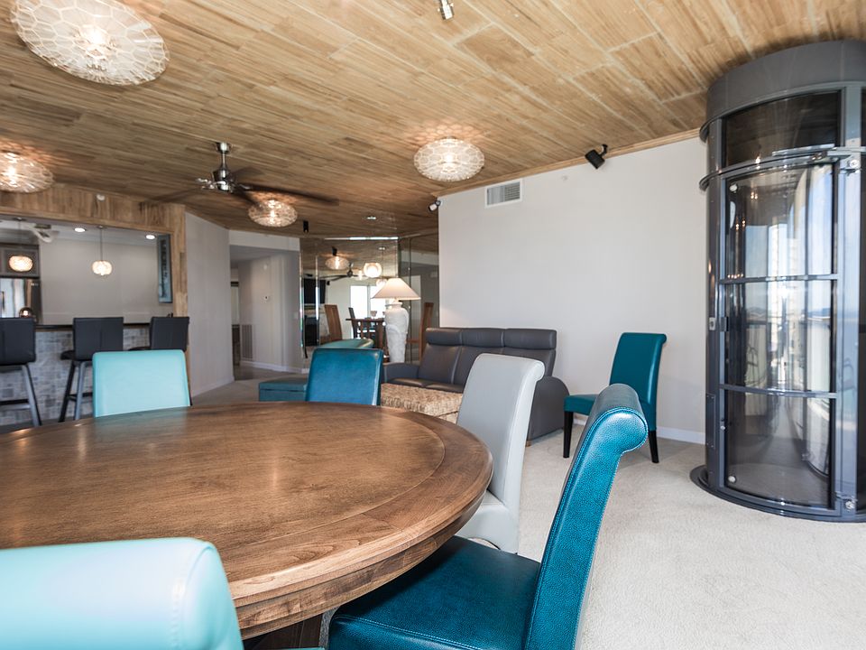 - Interior: Elevator, Ceiling Crwn Molding, Washer/Dryer Hookup, Woodwork Painted, Floor Tile, Floor WW Carpet, Pantry, Split Bedroom, Window Treatment All, Breakfast Bar, Built-In Bookcases, Walls Mirrored