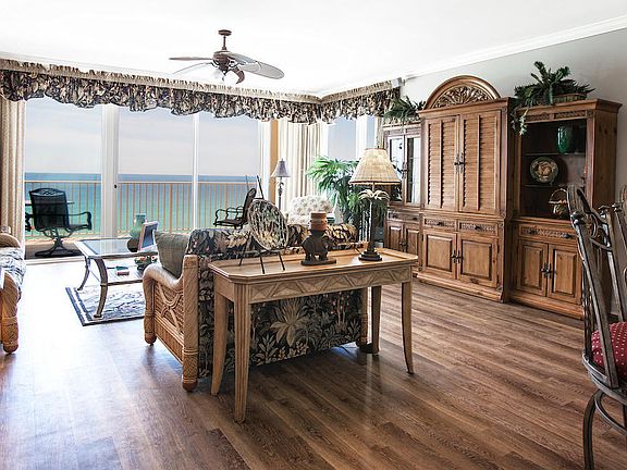 You will love this remarkable and stunning west end unit in quite and private Grande Surf Club. NEVER RENTED. Enjoy beauiful sunset views from the 7th floor wrap around balcony and spacious living room. Open to the living room is a separate dining area, large breakfast bar, spacious kitchen and large pantry. There is plenty of space with 2 large bedrooms and bonus room and 2 full baths. The large gulf front master bedroom opens to balcony and includes his and her closets with a luxurious bath including jetted tub, separate shower and separate vanities. Other features include beautiful hardwood flooring, crown molding, gas connection on balcony and 80 gal. hot water heater.