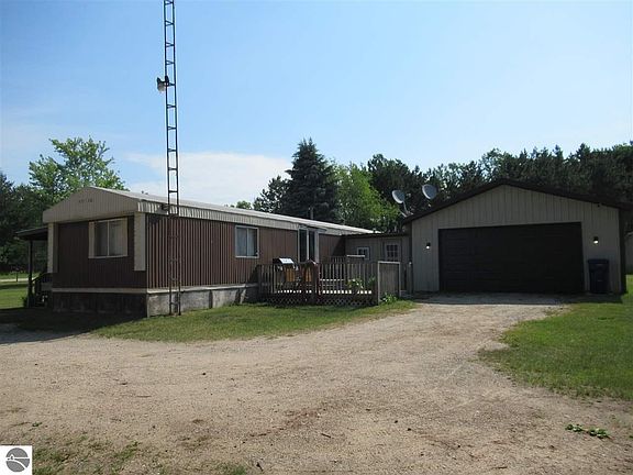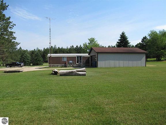 Affordable Up North getaway close to 1000's of acres of federal land for the outdoor enthusiast! This 1985 single wide mobile home sits on a nice 1.26 acre lot and has two bedrooms and two full bathrooms and approximately 1,000 square feet of living space. Nice three-season front porch, large rear deck, attached 24x32 pole barn, enclosed breezeway/mudroom, nice level yard with circular driveway makes it easy to get the toys in and out! There is also 24x32 parking pad. All appliances are included. Big beautiful, private backyard has a nice lawn with fire pit. Great location for all Northern Michigan has to offer: Caberfae Golf and Ski Resort is 20 min. away; Lake Michigan is 30 min. away; canoeing or kayaking the Pine River is just 10 min. away, and so on!!!!