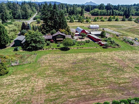 Possibilities are endless with 15 level acres + beautiful Lindal Cedar home. Huge garage with workshop and RV bay, lots of outbuildings. Lovely barn w/ wine room, office and tractor shed. Professionally landscaped, gated entries, pastures, wedding venue possible. Established gardens, and fruit trees + commercial greenhouse. Too much to list here. Must see to believe! Property not far from Arlington city limits with possible future for sewer & water connections and possible up zoning.