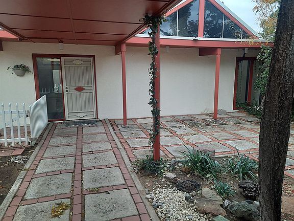 This is a mid-century, single-story classic on a huge lot with mature trees and landscaping in the La Sala Grande Subdivision. The price reflects that the home needs updating. However, it does have newer windows, 2 refrig. air units, 2 heating units and a step-in, jetted tub in the main bathroom. There are 2 living areas with vaulted ceilings, high windows, and one has a wood stove. The garage is oversized with a 16x16 workshop and additional storage adjacent to the 2 car bays. The primary bedroom opens to the heated sunroom and has a large walk-in closet. Sunrise breakfast or sundown recreation is perfect in the private courtyard entry, while the parklike backyard is filled with trees, walkways, a shed, and patio areas. !!!This is a great Price - Check the comps for La Sala Grande!!