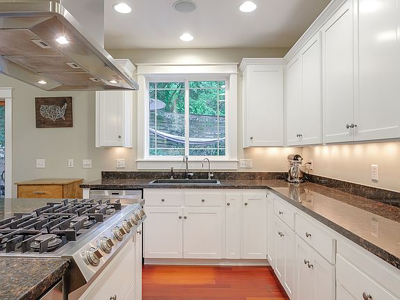 Elegantly updated Traditional home in Multnomah Village. Property sits on .18 acre lot surrounded by trees. Cherry Hardwood on main floor w/stunning millwork throughout. Kitchen boasts granite slab, gas range, wall oven & prep area w/2nd sink. Master bedroom includes attached bath w/clawfoot tub, slate shower & skylight. Huge deck w/built-in BBQ, fridge & gas firepit. This is an Entertainers Dream. New Spring Garden park around corner. [Home Energy Score = 4. HES Report at https://api.greenbuildingregistry.com/report/pdf/R575362-20180614.pdf]