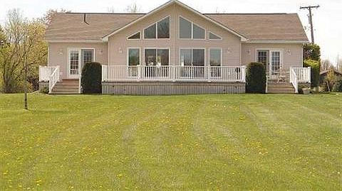 Basement has the 3rd bedroom, full bath and Egress window! Wait until you see the inside of this AMAZING home sitting on 11.3 sprawling acres! 16' Great room ceiling with gas fireplace and full wall of windows that over looks the wrap around deck, pond and all wildlife. Beautiful hardwood floors in over sized kitchen with breakfast nook. Tons of cabinets. 3 Full ceramic BATHS in this house! Master has full bath, jacuzzi tub and pan ceiling! The property is Gorgeous, Barn w/220, work shop
