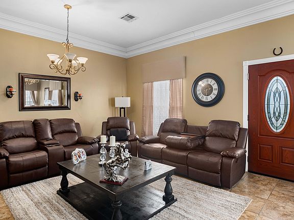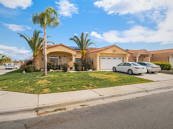 **BOM** **Don't Miss this Beauty** This home has so many upgrades, and it can be yours. Mature Palm Trees greet you as you pull up. Enter onto the custom, large tile floors that run throughout the living areas * Beautiful laminate planks embellish the bedroom floors * The kitchen is very large with many cabinets, dark granite countertops, stainless steele appliances, and room for a formal dining room and a breakfast table area * Crown Molding frames the kitchen and main living space * The hall bath has an upgraded custom walk-in shower * Custom Window Coverings throughout * Garage walls are finished with drywall and is ready to be a man cave! The large backyard has space for kids, dogs, barbecuing, hanging out under the patio enjoying summer evenings. Solar panels offer summer savings on A/C!