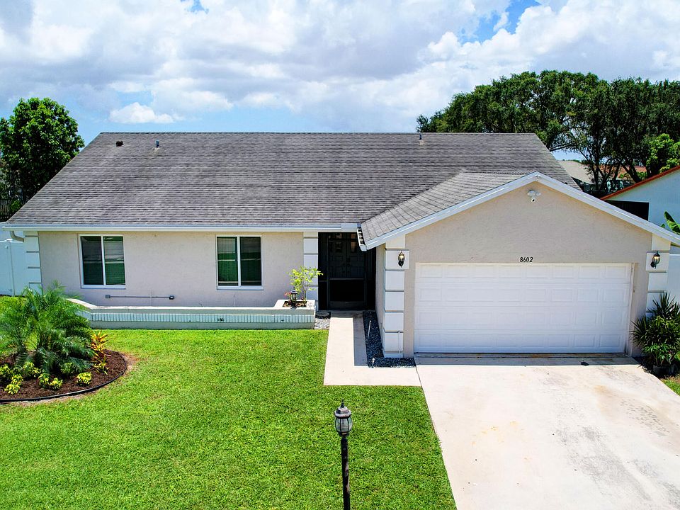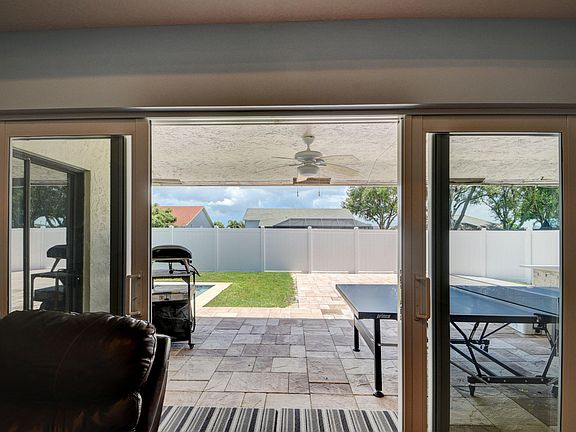 Welcome Home! This single family home features an open floor plan with 3 bedrooms, 2 baths, 2 car garage, brand new 2023 pool/spa and patio with outdoor kitchen which is great for relaxing & entertaining with yard space to run and play. Master bathroom features beautiful spa like atmosphere with large double shower and double vanity. Impact windows, A/C 2021 & instant hot water heater installed 2019. New tile just installed in both secondary bedrooms. Brand new 2023 stainless steel refrigerator, range and microwave.