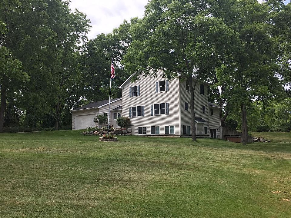 BUYERS AGENT PROTECTED... Nearly 3,000 Sq. Ft finished with this nearly new 2 story on 2.39 acres in the country, Caledonia Schools. Prime location not far from M-37 to zip on to 28th St, M-6 or 96. Home is open, spacious rooms. Main floor has 12x12 breezeway with laundry. LR, Den/Office, Kit/DA with sliders to very large deck. Lower level is finished with Family room with fireplace, and wired with surround sound. Rec Rm/Wet Bar, 4th BR and full bath. New furnace, spring 2016. Daylight windows and sliders. Property has pond with fountain which also feeds the underground sprinkling.. Windows are Anderson 600 Series, home well insulated. Barn with overhead door approx. 16x24