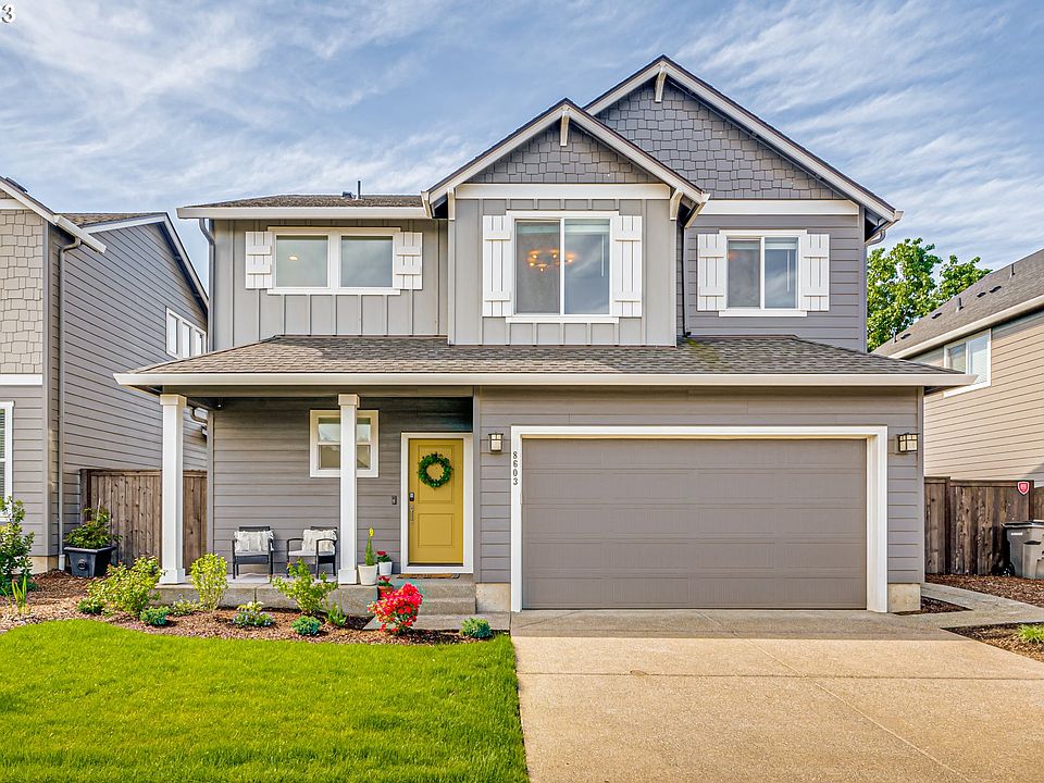 Welcome to one of Ridgefield's hottest neighborhoods, Greely Farms. This newer construction home has been lightly lived in over the last 2 years and has views of Mt Hood from the kitchen and backyard. Many upgrades added when built, including upgraded LVT flooring, added wine fridge, covered patio and more! Featuring 3 bedrooms plus a large loft upstairs and upstairs laundry. Open concept floor plan with ample storage, gas fireplace, natural light, granite counters, and spacious island with plenty of cabinet space in the kitchen. Multiple playgrounds in the Greely Farms community. Only 2 miles to freeway access, 3 miles to grocery store, new Costco being built, Tri-Mountain Golf Course and 4.5 miles to Ilani casino.