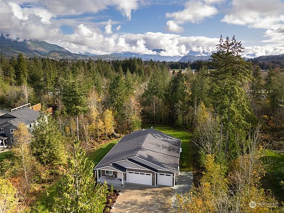 Your peaceful sanctuary awaits! Better than new, this 4 bedroom Birdsview rambler boasts over $50k in upgrades including; An expanded backyard perfect for entertaining, upgraded kitchen appliances, motorized blinds, New Lopi freestanding gas stove, Three wall mounted TV's w/ sound bars, large fireproof safe and more! Open concept living and an enormous kitchen with granite counters and LVP flooring throughout. Huge primary bedroom with walk in closet & en-suite bath perfect for a relaxing soak! 3 car garage & RV parking. Located in a quiet gated community adjacent to Rasar State Park, you'll love exploring the extensive walking trails and gorgeous Mountain and Skagit River landscape that surrounds this wonderful home! Video tour available!