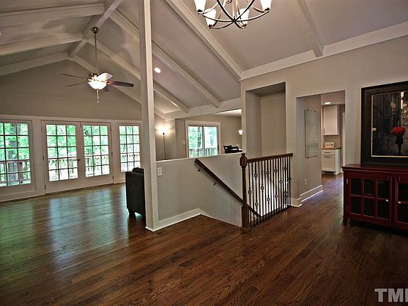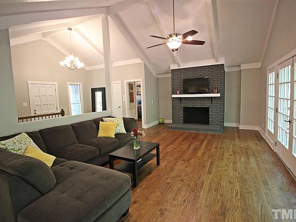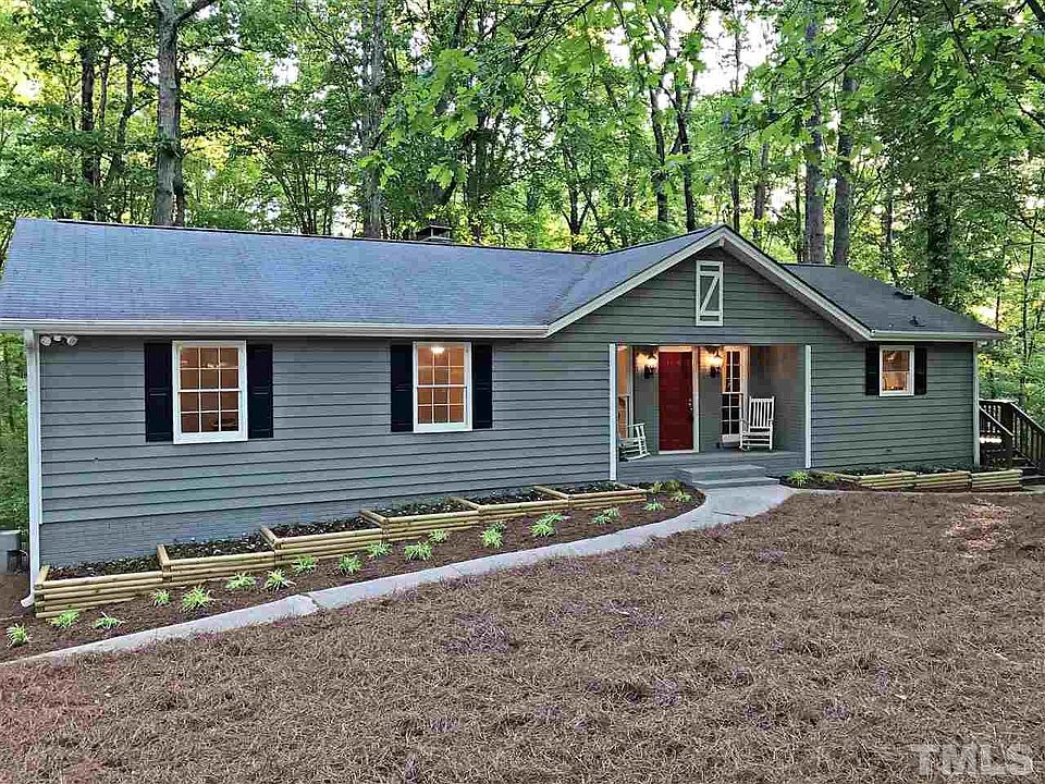 Showings start Sat. 5/5. AGENTS! see agent remarks. Spacious ranch w/full walk out basement on 1.4 acre, cul de sac lot. Spectacular updates-Renovated kitchen-new cabinets, butcher block counter tops, tile back splash, farmhouse sink, S/S appliances. Completely updated baths. New hardwoods on main level & luxury vinyl tile on lower. New hardware & fixtures throughout. Barn door closet door in master. 2 fireplaces. 500 sq ft of new decking. Gorgeous views from every window. Kitchenette on lower level. Neighborhood Is very quiet. Grocery store and coffee shop are 0.5 miles up the street. One mile to Lake Lynn park and less than five minutes to 540. 12 minutes to Brier Creek and 17 minutes to RTP. A Publix is being built at the corner of Leesville and Strickland and an elementary school is being zoned down Strickland towards Creedmoor. Per NCDOT Maidstone road and other neighborhood roads will be fully repaved in September 2018.