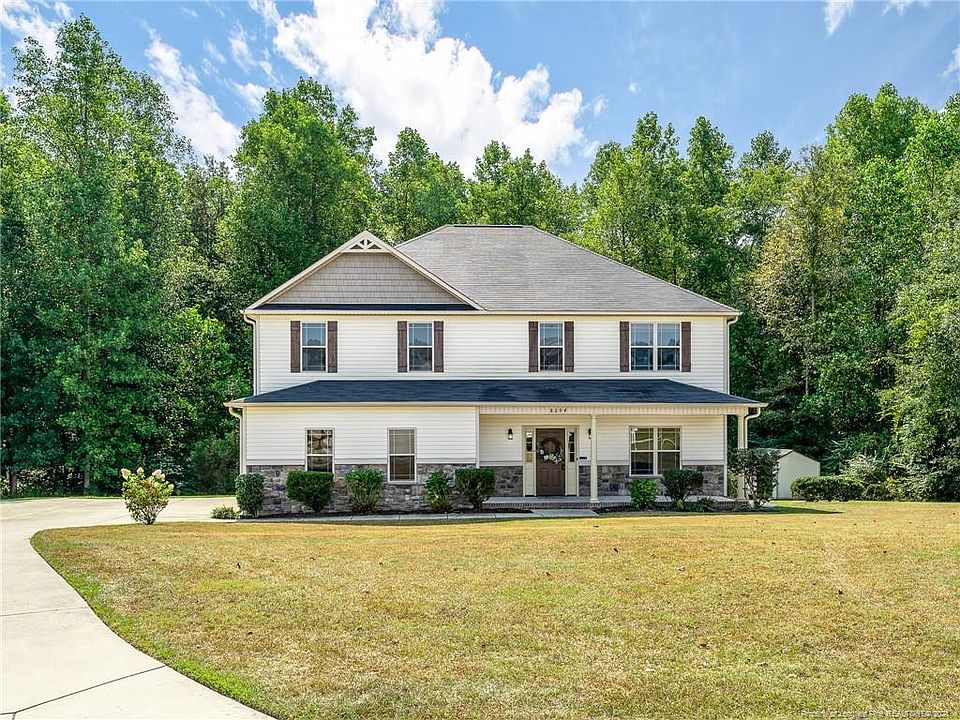 Large home on wooded 1.95 acre home site on a cul-de-sac. Home features rocking chair front porch, 3 bedrooms 2 offices, 2 full baths and 1/2 bath. Downstairs you have a large foyer, office, formal dining room, 1/2 bath, beautiful kitchen with granite counters, and stainless appliances. Extra large living room with fireplace and wood floors. Upstairs you have 3 bedrooms, an office or bonus room all have walk-in closets. The primary bedroom features a large sitting room off bedroom, primary bathroom has large double vanity, soaking tub, separate shower, and large walk-in closet. Outside you have a great screen porch that is wonderful place to watch nature in your own back yard, there is a wonderful fire pit for nights with friends making s'mores and memories. Double, side entry garage is spacious with extra driveway to turn around. The seller is leaving shed and swing set as is.