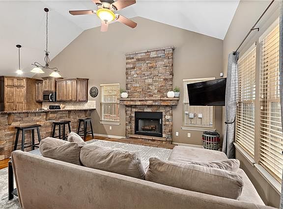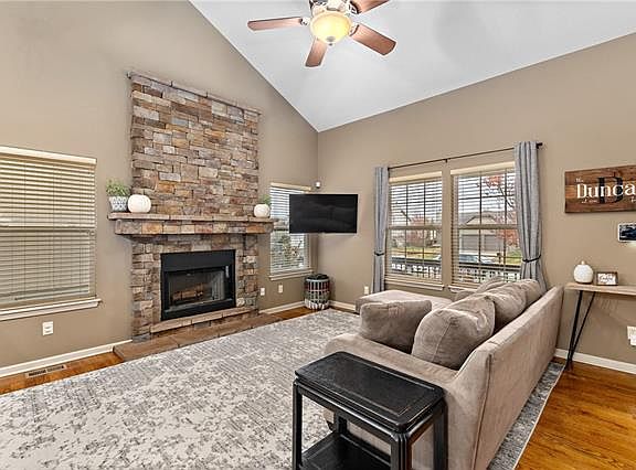 Everything you have been looking for and more. Super Nice ranch/reverse with 3 bedrooms and 3 full baths. Updated exterior paint with beautiful landscaping and front porch. Walk in to this Wide floor plan -great for entertaining your family and friends. Gorgeous stacked stone fireplace in living room that opens to breakfast bar and kitchen area. Plenty of cabinet space and pantry. Granite countertops and stainless and black appliances. Easy access to back yard from sliding glass door. Expanded patio so you can entertain and enjoy the views. Level back yard. Finished basement with nice sized rec room, 3rd bedroom and 3rd full bath, storage and workout areas. Neutral colors and immaculate condition so you can move right in and start enjoying. This home has upgrades throughout. A must see! Schedule your showing today.