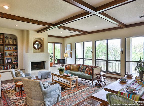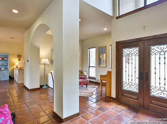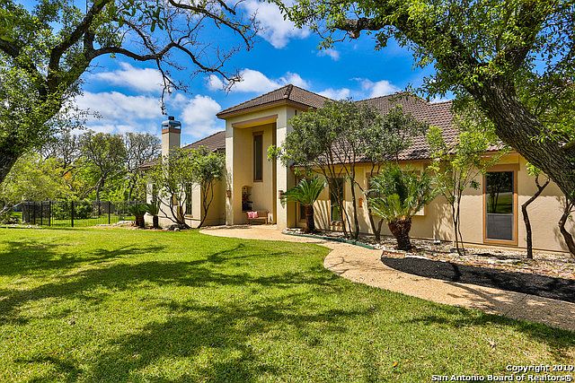 Motivated Sellers! Priced to be able to update bathrooms to your liking. Hacienda style home in the guard gated section of Fair Oaks Ranch. Saltillo tile, darling style & 3 fireplaces make this home a true beauty. Living-dining combo is set up for easy conversations & large gatherings. The kitchen has built in stainless appliances & butcher block counters. A study/office could be set up where piano is. Enclosed side yard is perfect for your furry friends. Current Master can also be used as game room!