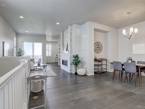 Welcome to your dream home in Leyden Rock! This exquisite paired patio home, built in 2017, offers 2 bedrooms and 2.5 baths with plenty of space and functionality for a truly exceptional living experience. As you step inside, you'll be greeted by beautiful dark flooring and the warmth of a stacked stone fireplace, creating an inviting atmosphere for relaxation and gatherings. The open-concept layout seamlessly connects the living, dining, and kitchen areas, making entertaining a breeze. The kitchen is a chef's delight, featuring a spacious kitchen island that's perfect for meal preparation and serving, a gas stove, upgraded tall cabinets with soft close doors and drawers, and undercabinet lighting. Enjoy the beauty of Colorado from the comfort of your home with amazing views that will leave you in awe. The plantation shutters throughout the home not only enhance privacy but also allow you to control the natural light streaming in. Solar tube skylights allow even more natural light in the home. The primary bedroom offers a serene retreat with a large closet that ensures all your storage needs are met. The en-suite bathroom is a spa-like haven, complete with modern fixtures and finishes and a curbless shower. The carpeting has just been replaced, so you can move right in and enjoy the space. This home doesn't just stop at aesthetics – it's designed for practicality too. With ample storage space, including an unfinished utility area, and large storage closets in the basement, as well as a 2-car attached garage, you'll have plenty of room for all your belongings. Located just a short distance away, the neighborhood park provides a perfect setting for outdoor activities and relaxation.
