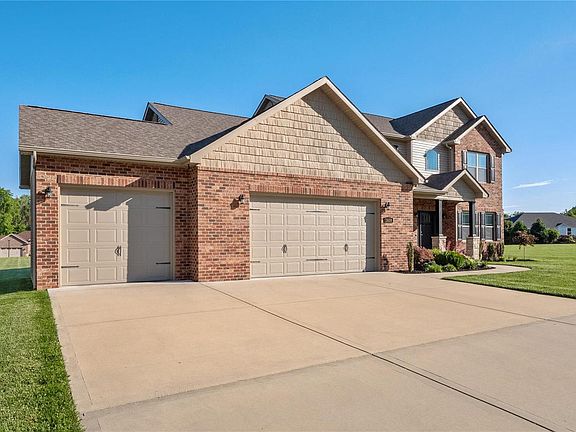 Remarkable find in Braeswood Trails! Tucked in the back of the subdivision on a half acre cul de sac lot, this story and a half offers more than location! Inside you will find hardwood floors, arched doorways, a formal dining room, large laundry room with wash tub, two story living room with a wall of windows and gas fireplace. The living room opens to the large kitchen with granite counter tops, high end Kitchen Aid stainless appliances that all stay, walk in pantry and breakfast nook with vaulted ceilings. The main floor also has the master bedroom with luxury master bath with soaking tub, tiled shower, double bowl vanity and walk in closet. Upstairs there are three spacious bedrooms and a full bath. The finished basement has 9' ceilings, a huge family room, 3/4 bath, and bedroom 5. Lots of unfinished space for storage, dual zoned heating and cooling, new water heater, 3 car garage, minutes to Scott Air Force Base, I64, Metro Plex and O'Fallon schools!