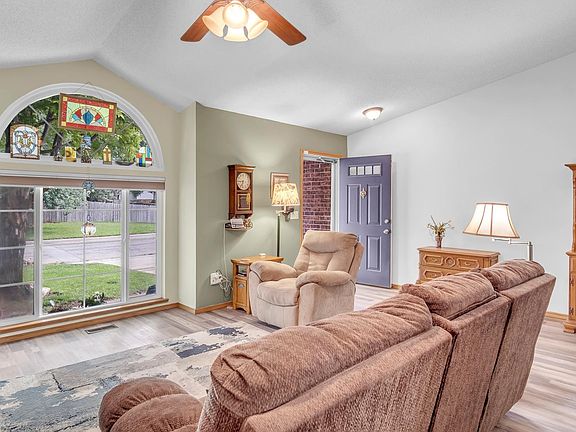 Beautiful 3 bedroom, 2 bath home in the Maize school district. Large arched front window allows plenty of daylight for the living/dining area with vaulted ceilings. Kitchen and dining area are separated by a breakfast bar. Kitchen appliances are includes. Main floor includes two bedrooms. Master bedroom has large walk-in closet. Laundry is on the main floor. The finished basement includes a family room, bedroom, bath and a large bonus room as well as a gas fireplace and plenty of storage. You will love the screened in patio off the back of the home! There is a wooden fence surrounding this well-groomed back yard that includes a tool shed, sprinkler system and irrigation well. You won't want to miss this one!