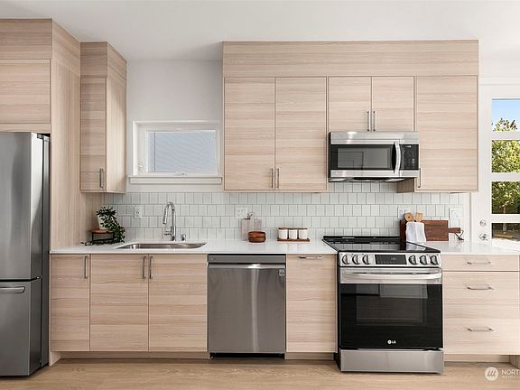 Get a rate in the 5%’s - ask about rate buydown program! Welcome to Blackwood Homes’ newest offering in Greenwood on a sunny and quiet residential street! This semi-detached home offers privacy, custom finishes, PARKING and even a surprise laundry chute! Enter past your lush front yard to the main floor, boasting a powder bath, storage & open-concept living/dining/kitchen with abundant cabinet storage, quartz counters and LG stainless steel appliances. Enjoy privacy in your primary suite w/ walk-in closet and dual-vanity bath on it's own level, away from the guest room w/ private bath. Take in the views from your expansive roofdeck! Proximal to local restaurants, grocery & cafes, w/easy access to Green Lake, Shilshole, DT Seattle & more!