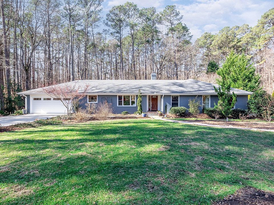 UPDATED, LUXURIOUS 4 Bedroom 3.5 Bath 4-SIDES BRICK RANCH on 1.35 acre private cul-de-sac in the back of Springdale Estates. CITY WATER, NATURAL GAS, HIGH SPEED INTERNET INSULATED CRAWL SPACE, and a beautiful community lake. Low county taxes. $350K+ spent on a professional, permitted, remodeling project in 2017. Close to Leesville school, RDU, Shopping, I-540, Triangle Town Center, Hospitals, & RTP. Relax by the impressive fireplace or on the insulated sunroom overlooking the TREX DECK, extensive landscaping, two sheds, a patio, fire pit and koi pond. Wired for a whole house generator. AGE IN PLACE with wide doors and zero step shower for the primary bedroom/bath. Preferred closing date April 30th