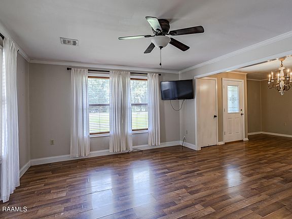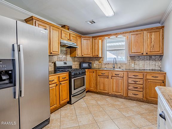 Welcome to this adorable home on a spacious 1/2 acre corner lot! Step inside to an open-concept kitchen, living, and dining area filled with natural light. The kitchen features real oak cabinets, a 5-burner gas stove, and a rustic coffee bar with extra storage--perfect for both function and charm.The home offers three bedrooms (two with laminate flooring and one with carpet) and a stylish bathroom complete with a tile tub/shower surround, granite tile countertop, and ceramic flooring. The large utility room provides additional storage and opens directly to the back patio for convenience.Out back, the fun begins! Enjoy a huge covered patio with a custom TV cabinet and bracket, perfect for watching the game while grilling. The backyard, enclosed with a split rail fence and double-gate access, offers plenty of space for entertaining, BBQs, crawfish boils, bonfires, or simply relaxing in the fall breeze. There's also workshop and storage area with an extended covering for lawn equipment , riding toys, or hobbies--and the lot has ample room for parking an RV or large boat.With 5G streaming available, endless outdoor space, and charming interior updates, this home is move-in ready and won't last long!