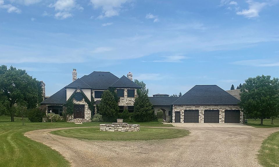 I am selling my beautiful country home, located on 20+ acres 6 miles north of Bismarck. The home has a total of 4489 sq. ft. finished and the unfinished basement has 2151 sq. ft. It has a three stall garage of 1240 sq. ft. On the property is a 75'x42' Morton Building with a heated kitchen area with sink and separate bathroom. Also, on the property is a 18'x24' pump house with 2 pressure tanks, 2 wells and zoning to irrigate yard. The house has rural water irrigation around perimeter of house and zoning of wells for remainder of yard. The interior of the home needs to be seen to be totally appreciated. The home also has an activated security system. Please call me at 701-226-2175 if you have any questions or would like an appointment to see this one-of-a-kind home.