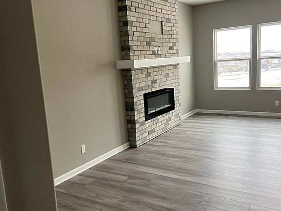 Contract Pending READY NOW!! Richland Homes Granite Modern Prairie comes with walkout basement, SS appliances, smart thermostat and keyless entry. concrete patio with deck, electric fireplace with stone surround. Drop zone area off of garage, laundry room folding table. Matte black fixtures, white subway tile in kitchen backsplash, gray cabinets. sprinkler system and more.