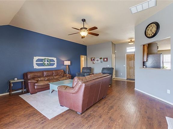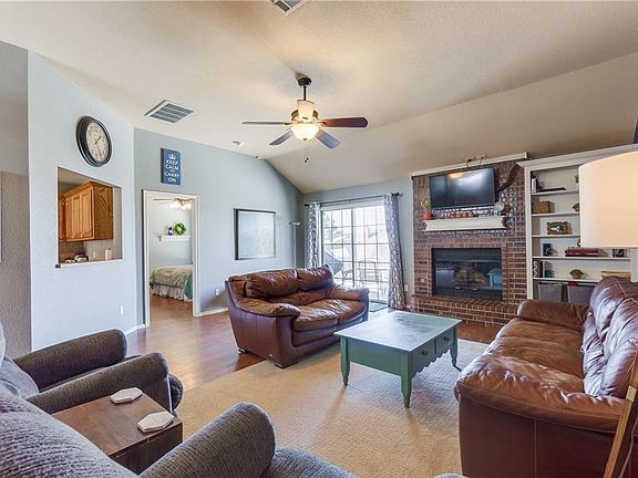 Pristine, move-in ready home with so much care and attention to detailed maintenance you will appreciate! All solid surface flooring, no carpet for enhanced air quality. Excellent layout with outstanding windows offering great natural light from every room in the house. Master bedroom features excellent oversized closet and separate shower & tub in the bathroom. Freshly painted, the stylish interiors are peaceful and inviting. Secondary bedrooms are oversized and offer great closet storage as well. Real wood burning fireplace in living keeps you warm anytime. A storm shelter in the garage and nice storage shop in backyard are even more amenities hard to find for this price! Brand new 50 gal hot water tank, Feb '21. Sitting up high, the backyard looks out with a nice view of great sunsets, plenty of room for kids or pets to play in fenced backyard. You won't be disappointed when you see this home in person. It could be the one you have been waiting for, don't miss out!