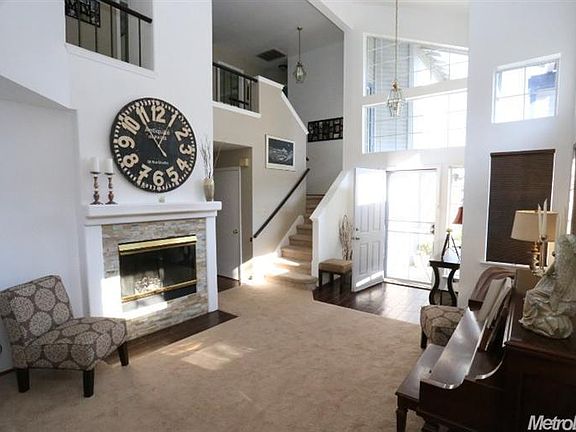 Upgraded and beautifully maintained 4 bedroom home. Enter into a bright and open living room with vaulted ceilings. Double sided fireplace is open to living room and family room. Lots of upgrades throughout including stainless steel appliances and granite counters. Woodgrain ceramic tile in many rooms give a rich look with extremely durable wear. Backyard is landscaped with synthetic turf for easy maintenance.
