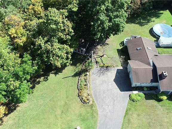 Enjoy the glass-enclosed pavilion along the creek, perfect for relaxing year-round. Outdoor fire pit, private backyard and above-ground pool create the ideal outdoor entertaining space and make summer fun a breeze. Sliders head out to the back deck, extending your living space outdoors! Inside you will find a large great room with soaring ceilings, tons of natural light and hookups for a wet bar - perfect for movie night and football games! Full bath located close to sliding door allows for easy access for those enjoying the pool! Large kitchen with breakfast nook and formal dining room. Den/home office has gorgeous wood floors, a large bay window and lovely fireplace to take the chill off those cold winter nights! 3 bedrooms on the first floor (could be converted back to two). The finished lower level offers an additional bedroom and full bath, plus plenty of storage and an area that would be perfect as a rec room.