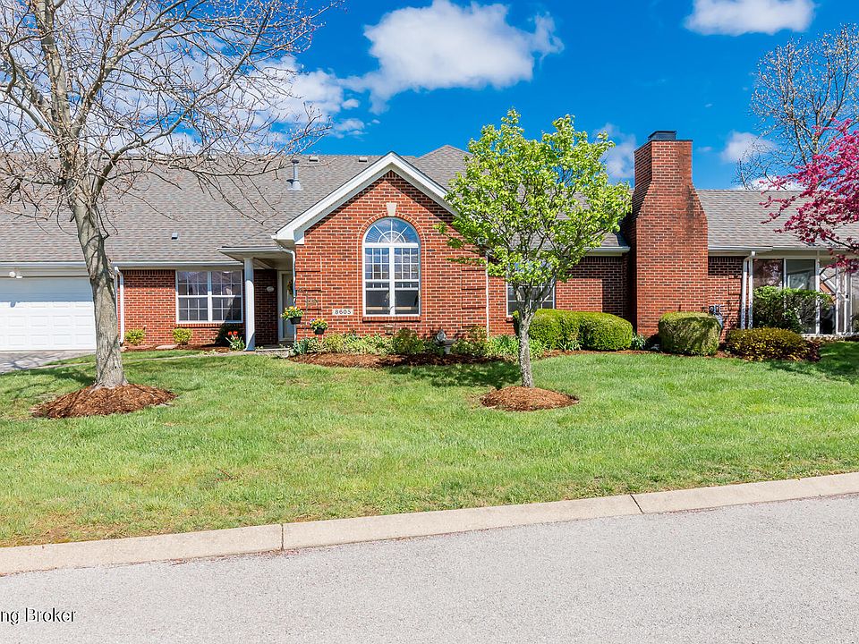 Back On the Market due to buyer financing! Hurry to schedule your showing on this 1 owner patio home located in desirable Woods of Glenmary just off Bardstown Rd and near the Gene Snyder. This brick veneer unit comes with a spacious 2 car garage with side entry through the laundry room and additional driveway parking. This one story living offers 2 bedrooms and 2 full bathrooms, great closet space, and storage with pull down attic access. Wood laminate floors extend through the living room where the ceiling lifts into an airy vault, but feels cozy in winter with a fireplace. Enjoy the sunroom addition as an extended living area and entertain easily with dual access to the kitchen where you'll find updated stone countertops and white tile backsplash with space to have your table right in the kitchen. This is a planned unit development and not a condo so you get ownership rights of the property, but the maintenance free lifestyle that comes with patio home living. The HOA manages exterior groundskeeping, snow removal, and includes trash. Owners carry their own insurance and are responsible for all other utilities.
