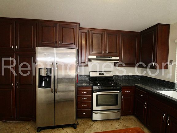 Beautifully remodeled single story home conveniently located near schools, parks, shopping and restaurants. Tile entry floors. Living room has a fireplace. Spacious eat in kitchen has tile floors, center island with a butcher block top, sparkling granite counters and stainless steel appliances. Bedrooms 1 and 2 have mirrored wardrobe doors and black out cell shades. Hall bathroom has tile floors, quartz vanity and a tub/shower combo. Master bedroom has mirrored wardrobe doors, black out cell shades, wall mount for a small flat screen tv (wall mount is "AS-IS"), tile bathroom floors and a walk-in shower. Attached 2 car garage has an opener, epoxy coated floors and storage cabinets. Fenced rear yard has a private swimming pool with service.