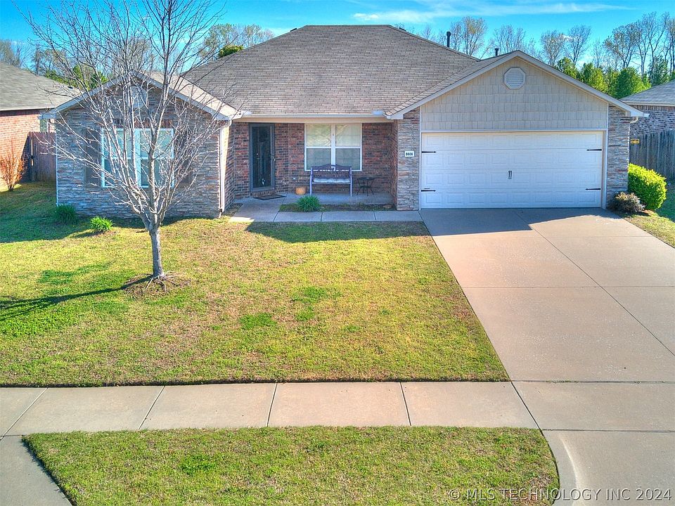 Welcome to your home sweet home. Split floor plan provides plenty of separation in this 4 bedroom home. Kitchen opens to living area which is great for entertaining. Beautiful hardwoods in living and halls, Tile in the kitchen. Relax on your deck in the back yard that looks out to a green belt and access to walking trails. Home is close to restaurants and all things that bixby has to offer. Home is being sold as is with no further repairs to be made by seller.