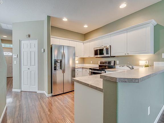 Kenton! Professionally cleaned-appliances included, AC too! Upgraded main level flooring, slider, refrigerator, guest bathroom! Tall & Vaulted Ceilings. Garage built-in storage cabinets & professionally installed overhead storage platform. Private landscaped backyard patio with solar lighting and drip irrigation. Easy care front yard with sprinklers and covered front entry with storm door. Home Energy Score=8. Trenton Park & University Park few blocks away. Bike Score=86! 3D Tour! [Home Energy Score = 8. HES Report at https://rpt.greenbuildingregistry.com/hes/OR10183838]
