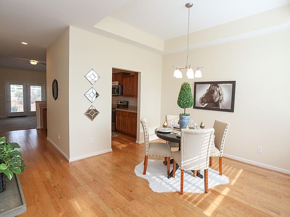 Immediate occupancy on this 3 year old patio home all on one level with no steps. This like-new home has 2 bedrooms with walk-in closets,, 2 full baths, dining room with tray ceiling, great room with vaulted ceiling and private master bath with double sink and stand up shower. The kitchen has cinnamon-stained cabinetry, neutral countertops with bar, pendant lighting, stainless appliances and opens into the great room. The formal dining room and kitchen have hardwood flooring and nickel lighting and fixtures. Enjoy your patio just outside the French doors from the great room. This home is in great condition, has neutral decor and is ready for you to move right in. Call today for your private showing - you'll be glad you did!