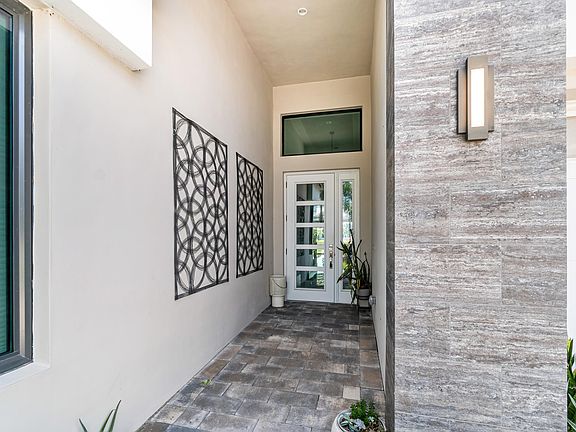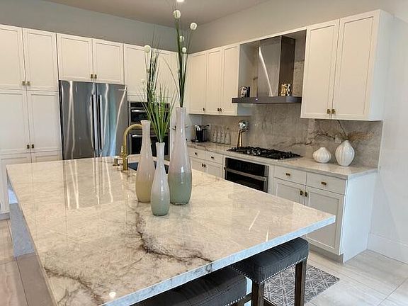 Elegantly upgraded Tahiti model on a premium lake lot in Lotus. Upon entering this lovely home you are greeted with Italian Porcelain 24 x 48 Tile Floors, 8'' moldings and vaulted entry ceilings. The expanded great room provides countless options for entertaining. The spacious primary bedroom and bath provide the perfect retreat with it's French door leading to the covered patio and yard. Brand new porcelain counters and backsplash. Outdoor is ready for future pool and summer kitchen. Third bedroom is configured as a den. Furniture negotiable.
