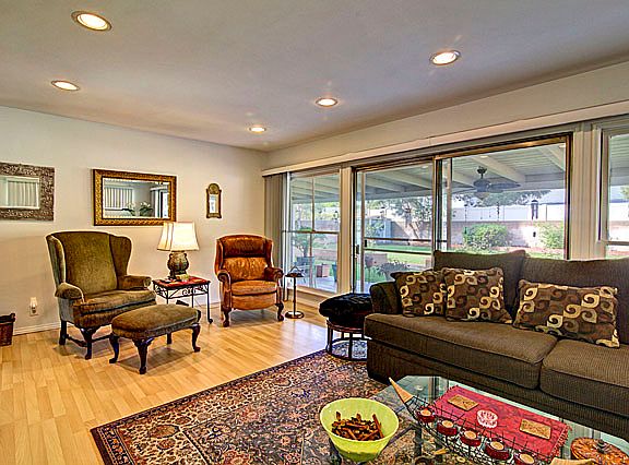 Northridge home situated in a great neighborhood on a quiet street with charming curb appeal and is set back from the street for privacy. This home has lots of large windows and natural light throughout. Inside you will find a lovely living room with fireplace, a formal dining area, and a family room with a brick fireplace. The spacious, updated kitchen features stainless steel appliances, newer cabinets, granite counter tops, and lots of room to cook & entertain. There are wood laminate floors throughout as well as smooth ceilings and recessed lights. Three bedrooms, including a master suite with private bath complete the home. The spacious back yard has a large covered patio and lots of grass to run and play. Well maintained and ready to move in. Close to Northridge Fashion Center and other major retailers, chops and restaurants.