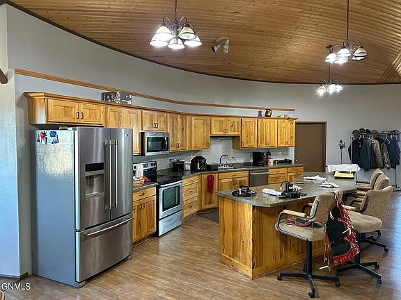This recreational property would be an excellent investment for those looking for a hunting retreat located in SW North Dakota. The home has a massive 2290 sq. ft. open space that would accommodate large gatherings. The open space includes a large kitchen with custom cabinets, a pellet stove for supplemental heat, and a grand vaulted ceiling. The primary bedroom has a full bath and walk-in closet. There are 2 additional bedrooms on the main floor. A 3/4 bath, large laundry room and separate pantry all add to the functionality of this outstanding property. New well pump installed in 2023!