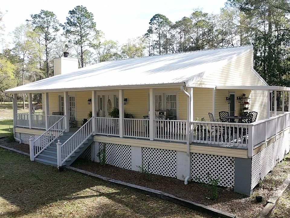 This is a beautiful 3 bedroom 2 bath house that's close to town on 5 full acres! The home sits far off the road, with a small yard for easy maintenance, and is surrounded by wooded acreage for added privacy. The home has a lot of windows that allow natural light to shine in. There are 2 master bedrooms! The main master bedroom is large & has french doors leading onto the rear deck. The spacious kitchen includes an island and the livingroom is open with a wood burning fireplace. This property has a completely remodeled she-shed, which makes a great hobby room, and there is a barn large enough to house your tractor and implements. The added bonus of paved road frontage allows your vehicles to stay clean! This area is also nice for walking, biking, or driving your golf cart through the neighborhood. The third bedroom does not have a closet but is large enough to build one out.