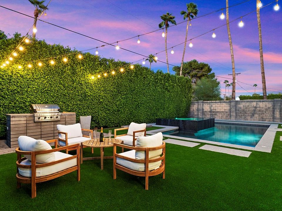 Discover effortless luxury in this four-bedroom, two-and-a-half-bath gem located in the heart of Old Town's most coveted neighborhood no HOA required! This home exudes LA style, with hollywood hedged exteriors and a hidden cabinet door that opens to reveal your very own movie theater. The expansive backyard is an entertainer's dream, a private heated pool and spa, a cozy fire pit, and a built-in BBQ for unforgettable gatherings. Enjoy the gated front patio with a charming fireplace perfect for chilly desert nights. Inside, you'll find a bright, upgraded space with a spacious extended living room and a fully permitted theater, blending comfort and sophistication. Plus, the lifestyle here is unmatched: hop on a golf cart to nearby bars and restaurants. Tenant pays utilities, lease can start after 11/16/24