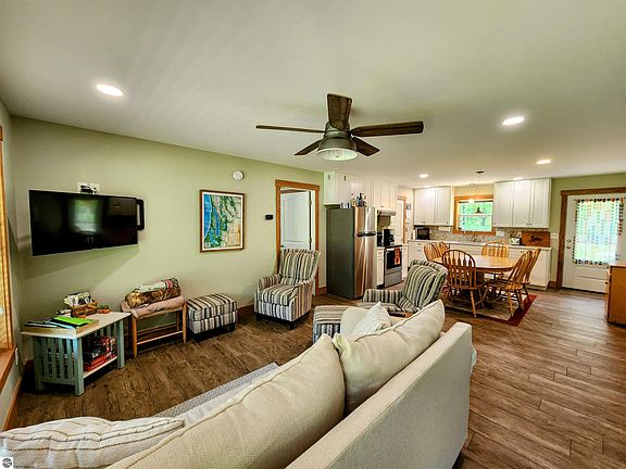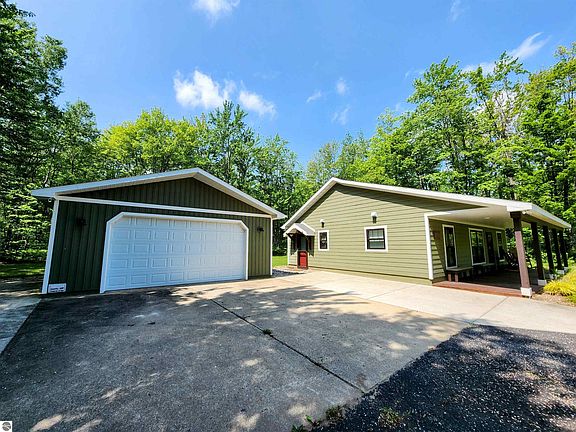 Built in 2018, this charming 3 bedroom, 2 bath ranch-style home offers the ease of one-floor living with the comfort of in-floor radiant heat throughout. The open layout is both functional and welcoming, with large windows that bring in natural light. Step out onto the covered front porch and enjoy peaceful evenings surrounded by nature. The heated two-car garage provides ample room for storage, a workshop, or recreational gear. Located in the Lakes of the North Association, you’ll have easy access to the golf course and nearby SxS and snowmobile trails, making this an ideal year-round residence or Up North getaway.