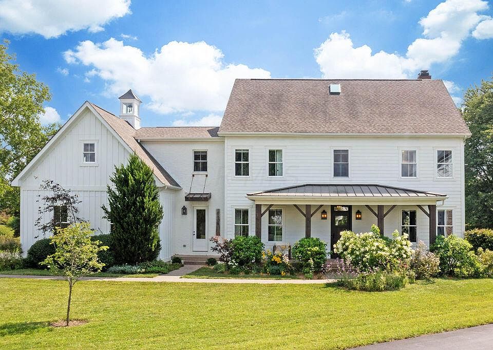 Stunning modern custom farmhouse w/charming front porch nestled in the intimate Morgan Place subdivision. Situated on ¾ secluded acres including productive vegetable & fruit gardens & your own greenhouse! Beautiful 4,400sf home masterfully crafted: wide plank oak floors, brick accents, exposed wood beams, wainscoting & surround sound. Soaring 9 ft ceilings allow an abundance of natural light. Chef's kitchen features: massive butcher block island, pantry, high end appls; open to eat-in space & family rm w/fireplace. LUX Owner suite w/dual closets & fireplace. Owner's bath: separate sinks & huge shower! In-law/nanny suite. Expansive 3rd level renovation includes a new full bathroom. Spacious 3 car garage. Mins to leisure/bike path, downtown Powell, parks, pool, schools & Polaris!
