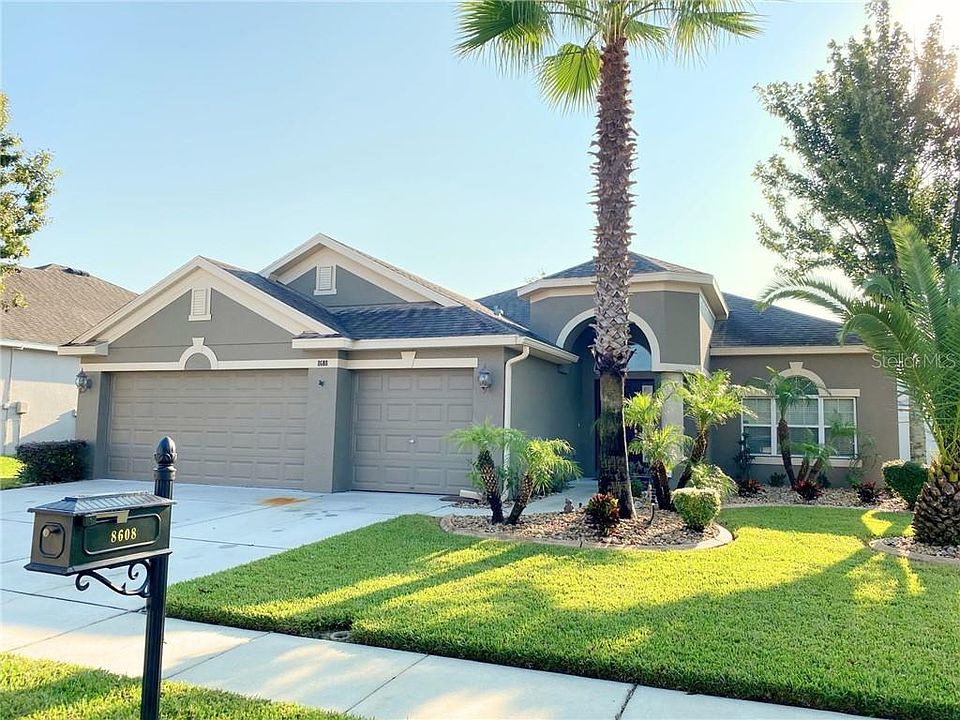 LOOK NO FURTHER! 4 Bedroom, 3 Bath, 3 Car Garage Home in Resort Like Community of Waters Edge. Step into this open layout featuring Formal Dining Room and Living Room with Tile Flooring. Chef's Delight Kitchen with 42" Oak Cabinets with Crown Molding, Corian Countertops, Stainless Appliances, Breakfast Nook and so much more overlooking the Open and Spacious Family Room and Pool Area. Master features Pool Views and En Suite Bath. En Suite Bath boasts His and Her Sinks, Large Soaking Tub, Walk in Closet and More. Perfect Mother in Law Layout with separate back bedroom with adjacent full bath. Two front bedrooms with a shared full guest bath. Upgraded Coordinated Tile throughout the Main Living Areas and Bathrooms. And if that isn't enough step outside into your Own Private Tropical Oasis. Extended Pavered Lanai has plenty of Room for Entertaining. Backyard is completely fenced for Fido to run and play. Home on a Pond so you can enjoy the ducks or deer in your backyard. Exterior Painted approx 2 years ago with 30 Year Paint. New Water Softener and Refrigerator is only 2 years old. Waters Edge is a Resort Like Gated Community with a Community Pool, Splash Pool, Two Playgrounds, Basketball Court, Fitness Center and so much more