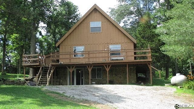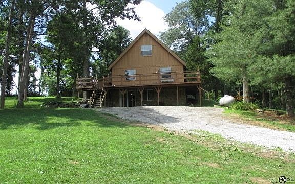 A-Frame home w/walk out unfinished basement on 4 acres in beautiful Brown County w/a pond. Deer, Turkey, and other wildlife all around. New septic system April 2014. Brown County Rural Water. Huge wrap around Deck.