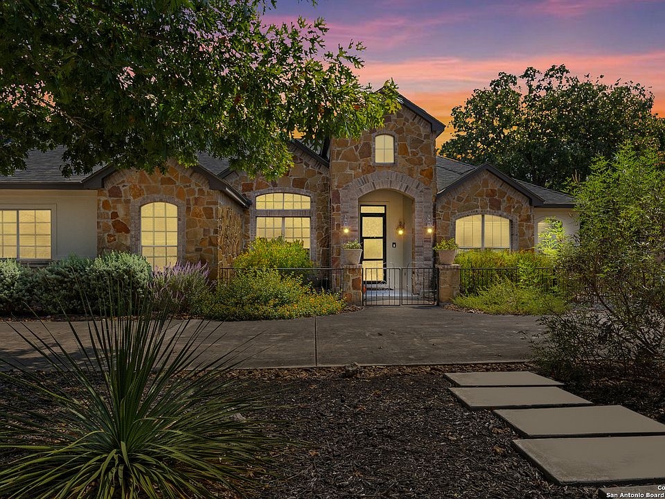 Experience luxury living in this exquisitely remodeled 4,292 sq ft home on a private 1-acre lot in highly desired back of Deer Meadow Estates in Fair Oaks. The expansive open-concept main level is perfect for entertaining, featuring a gourmet kitchen with a statement waterfall quartz island, high-end appliances, and a stylish living room with a slatted-wood feature wall and fireplace. This highly functional floor plan offers true flexibility. The main level includes the primary suite, three additional bedrooms, three full bathrooms, a dedicated office with custom built-ins, and a formal living or dining room. Upstairs, discover a spacious game room, the fifth bedroom, and the fourth full bathroom, creating an ideal guest or teen suite. Luxury touches abound, from the modern light fixtures and custom wine/coffee bar to the wide-plank flooring and quartz countertops throughout. Large sliding glass doors open to an expansive covered patio overlooking the tree-studded backyard, blending indoor and outdoor living. This exceptional property offers the perfect combination of high-end design, everyday comfort, and serene Hill Country acreage. Located in Exemplary Boerne ISD!