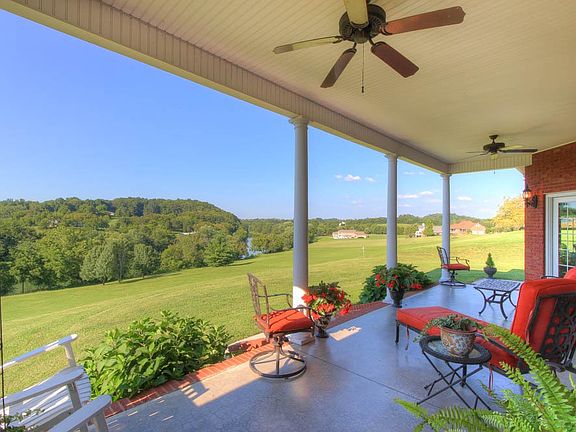 Price reduction! Motivated sellers are relocating! 5 acre waterfront mini farm on the Holston River in Knox Co. TN. All brick construction, 4 bedrooms, 3 full bathrooms, spacious master suite, 4 car garage, wood burning fireplace, gas fireplace, geothermal heating and cooling, large gourmet kitchen with solid surface counters, tile floors in all the wet areas and crown molding throughout. Exterior features a lovely 10x30 covered back porch to enjoy your private view of the bend in the Holston River and House Mountain. Beautiful mature landscaping all the way around the house and a stocked pond. Water front lot is dock ready and horses and cattle are allowed! Basement features 2 bonus rooms, extra storage, garage space and potentially separate living quarters with a bedroom and full kitchen. Amazing home!