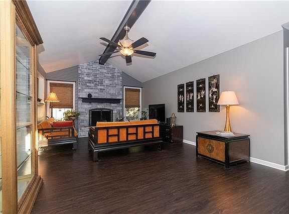 SPACIOUS and move in ready, 3 bed, 2.5 bath home close to shopping and interstate access. Basement den space is very cozy with second fireplace. Floor to ceiling brick fireplace in main living room, exposed beams...beautiful design! Main level laundry, bedrooms are all great in size. Level and fenced in backyard with patio space, enter home through lovely French doors.