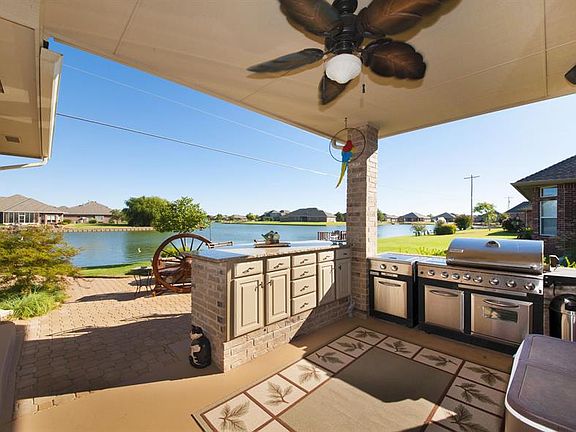 Beautiful home on the lake! This pristine home backs to the lake at River Bend Estates. Your own personal oasis awaits you. Immaculate home with hand-scraped wood floors and new carpet in owner suite. Many beautiful features you must see in person, including bull nosed corners, surround sound in living-master-master bath-and outdoor kitchen. Study has hand-scraped wood floors and large closet with built-in storage and shelving. Secondary bedrooms have very large walk-in closets. Outdoor kitchen has gas grill and oven that have natural gas source, and also an outdoor fridge. The fire-pit is hooked up to natural gas and has a nice built-in wall for extra seating! You will have your own personal dock for sunning and fishing in a stocked lake! The beautiful sunroom has a custom built fireplace, and gives you all the entertaining options you can imagine! Gas range in the kitchen with built-in oven and microwave. Beautifully cared for home in pristine condition! Call to see today!